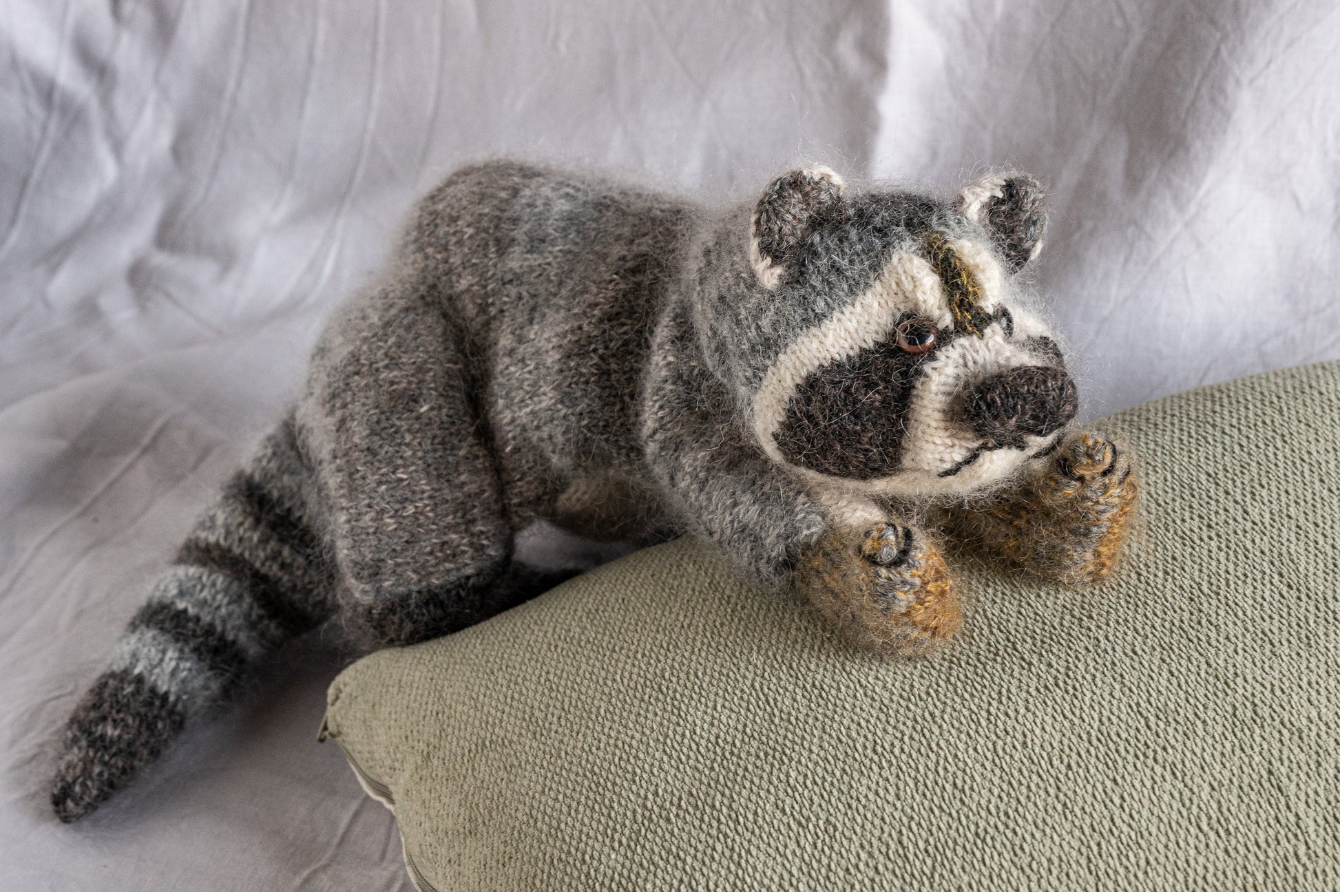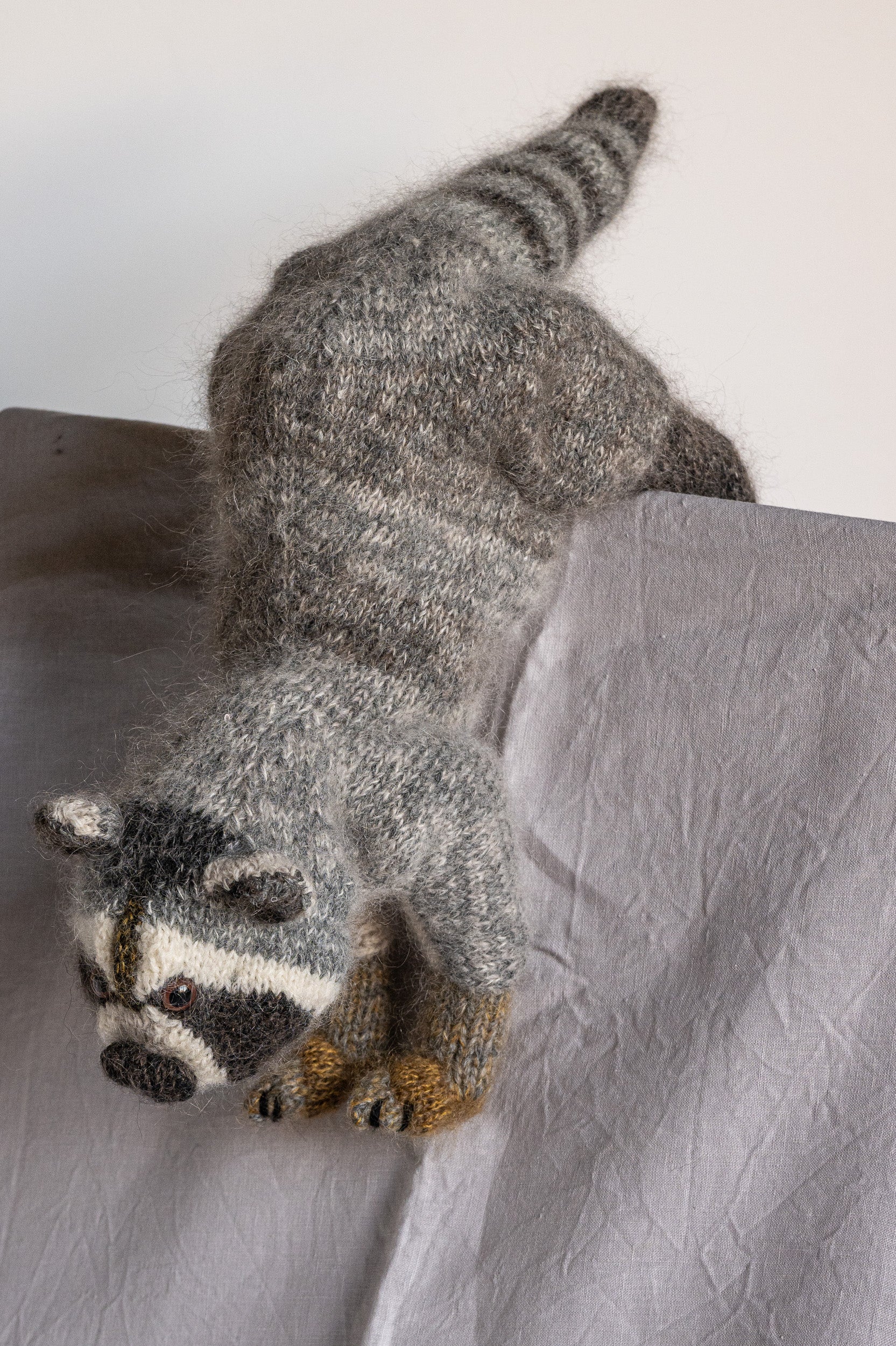 Hand knitted from a luxurious blend of silk and alpaca yarns, Rufus is wonderfully soft to hold, with just the right amount of stuffing to make him perfectly floppy yet irresistibly cuddly. He has a habit of appearing exactly when something has gone missing — usually with an innocent expression and an excellent explanation.