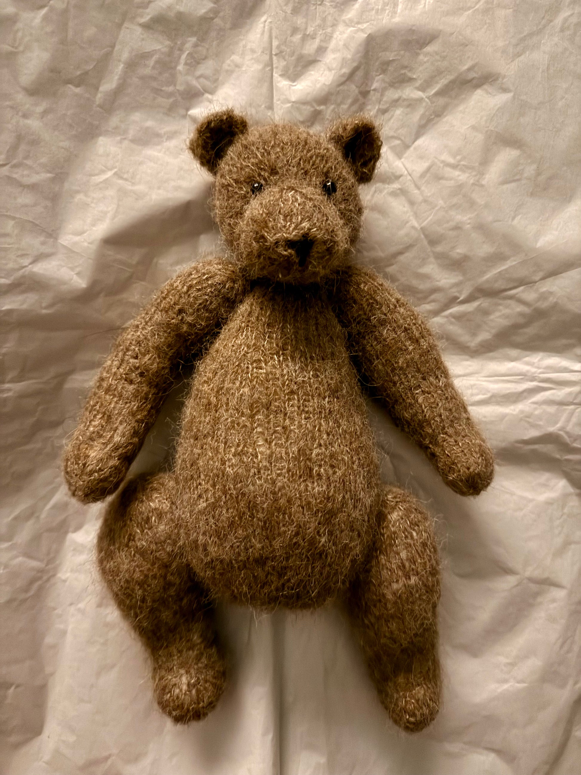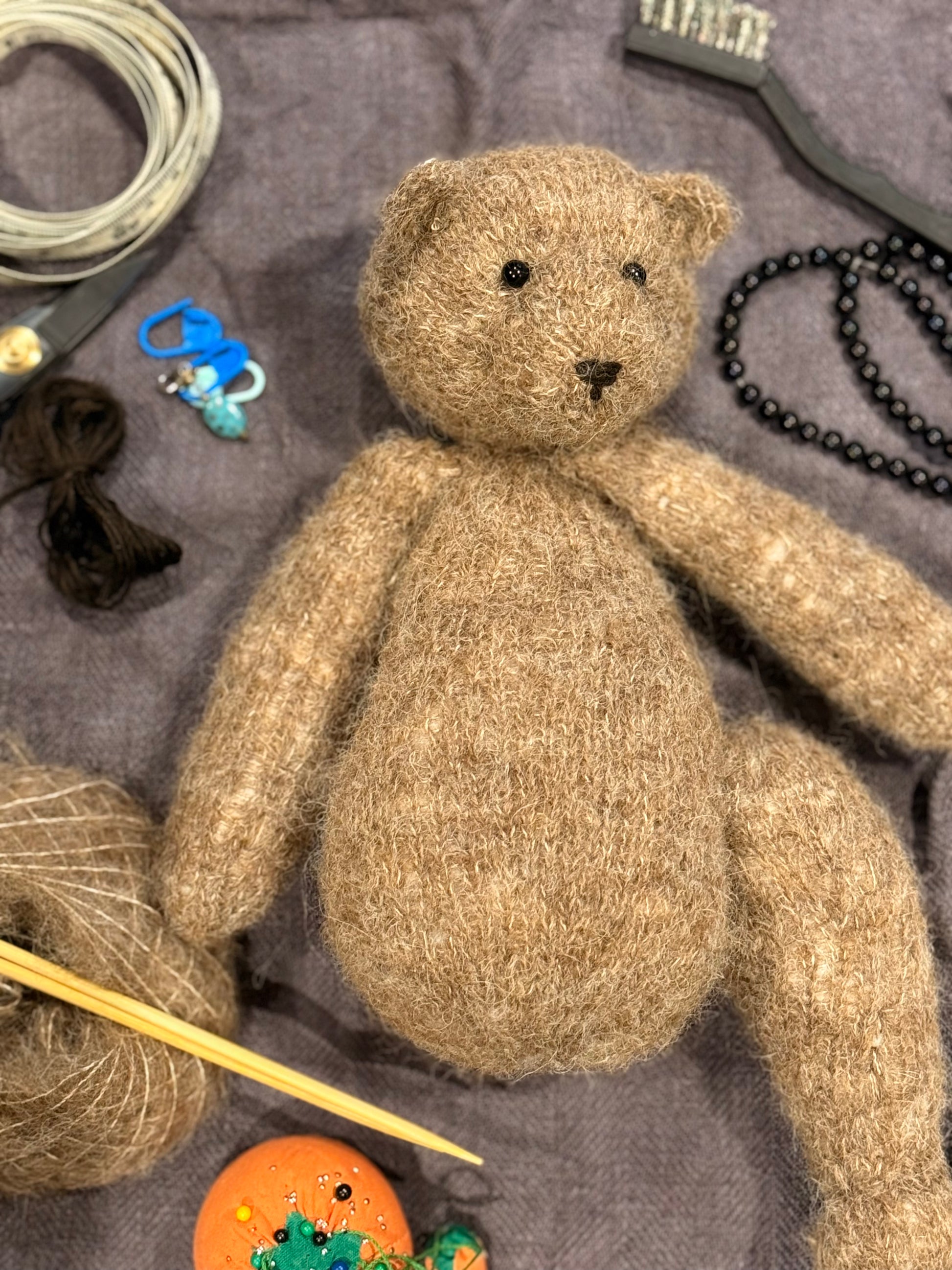 Teddy Bear Hand Knitted in silk and alpaca yarn